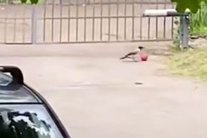 В Санкт-Петербурге ворона замечена за необычным занятием — она «играла» с мячом на проезжей части,...
