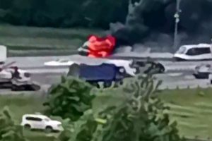 В Москве на МКАД наблюдаются затруднения в движении транспорта из-за горящего автомобиля, сообщает Telegram-канал «Агентство...