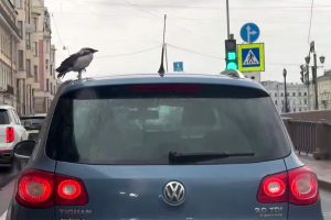 Житель Петербурга вез ворону на крыше своего Volkswagen, и это попало на видео