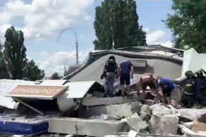 Сотрудники МЧС России устраняют последствия атаки на минимаркет, расположенный на автозаправочной станции в Белгороде. Об...