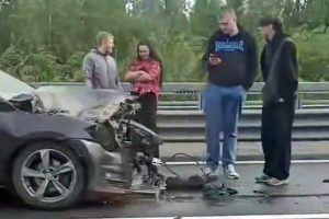 На внешнем кольце КАД в Санкт-Петербурге произошла авария с участием двух автомобилей, сообщает Telegram-канал «ДТП...