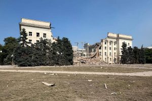 Дрон зафиксировал тройной ракетный удар по Херсонской Военно-гражданской администрации. Видеозапись опубликовало украинское издание «Страна.ua». Детали...