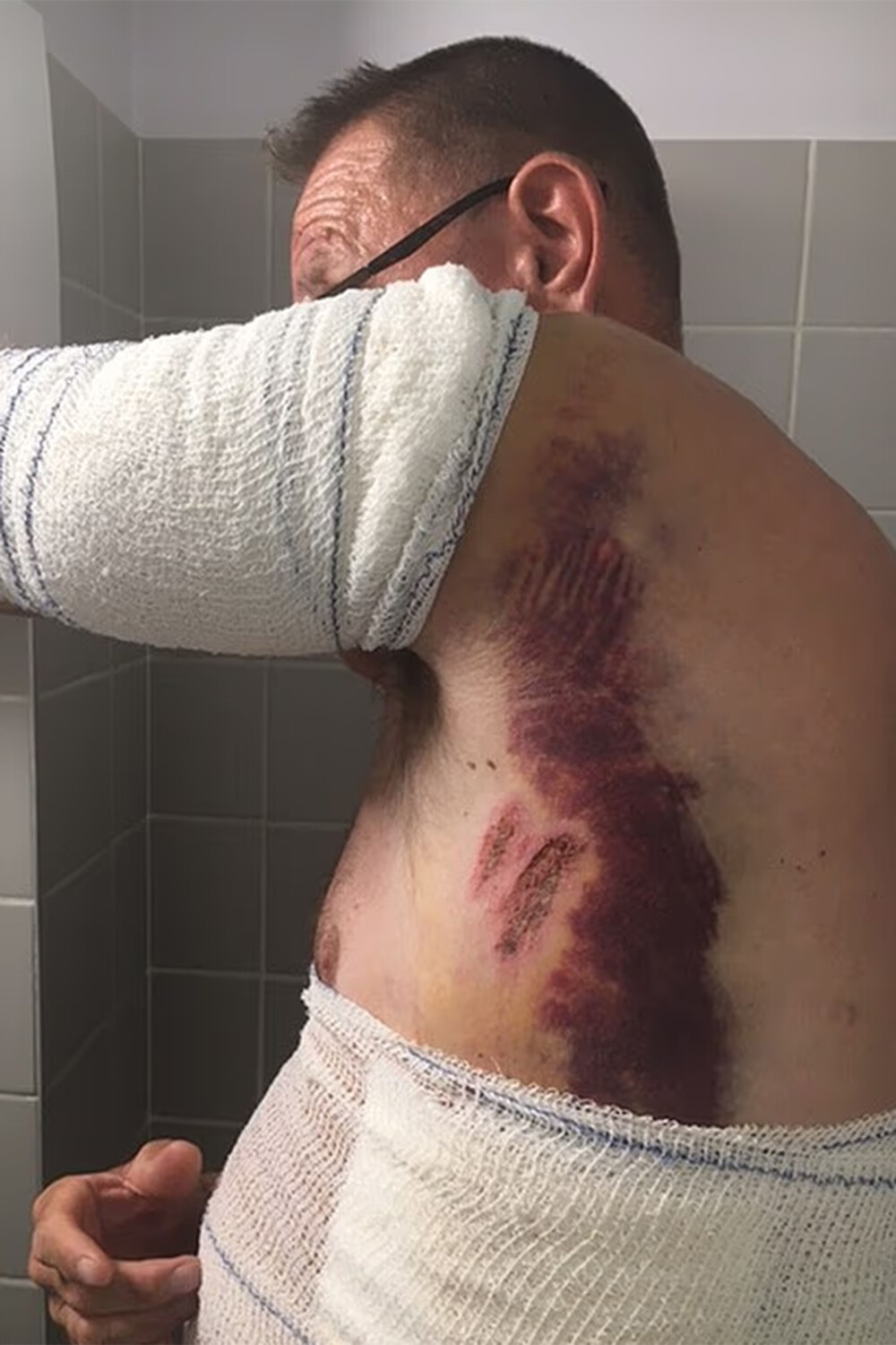 Барретт упал на землю, потеряв контроль над телом. Его друзья тут же подбежали к нему, опасаясь за его жизнь. В результате удара мужчина получил ожоги, сломанные ребра, синяки и травмы плеча от летающих осколков дерева. В больнице ему сделали несколько швов, и он провел там пять дней под наблюдением врачей.