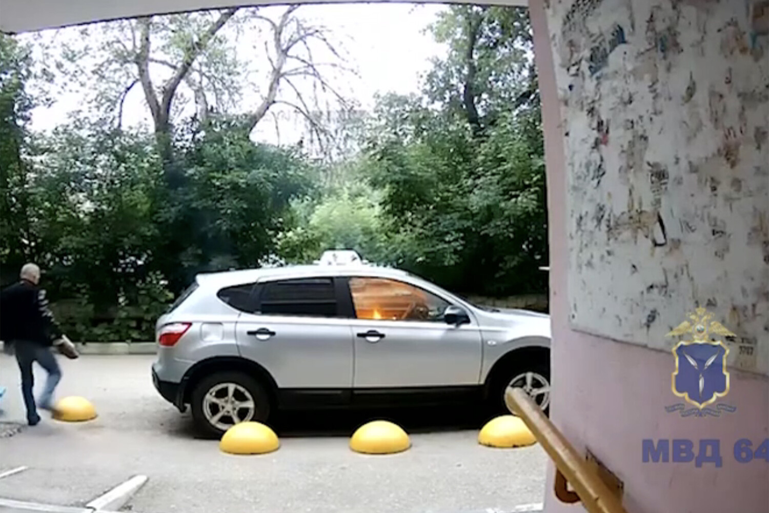 Так как машина была припаркована напротив подъезда, инцидент зафиксировала камера видеонаблюдения на входной двери. На видео видно, как злоумышленник принес горючий материал, оторвал задний дворник и попытался разбить стекла машины с помощью камня. Огонь вспыхнул у водительской двери.