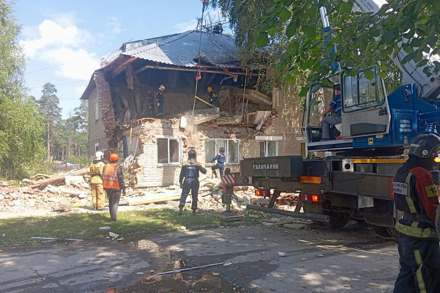 Взрыв произошел в 12:30 (8:30 мск) в многоквартирном двухэтажном доме в посёлке Красный Яр. По словам очевидцев, за некоторое время до инцидента жители дома почувствовали запах газа и вызвали специалиста.