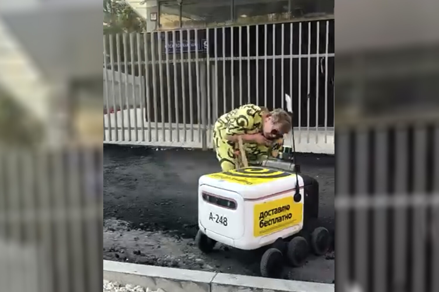 Происшествие было запечатлено на видео очевидцами. Кадры демонстрируют, как женщина придает роботу толчок, и он успешно преодолевает бордюр.