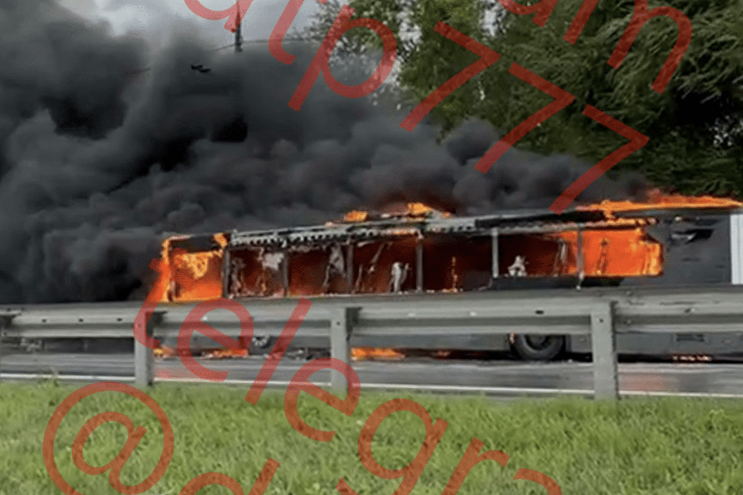 Инцидент случился в районе городского округа Подольск. На видео видно, что остановившийся на дублёре трассы автобус полностью охвачен огнём, при этом пламя бушует как в кабине водителя, так и в моторном отсеке в задней части транспортного средства. Из-за пожара движение в этом месте было парализовано, на видеозаписи запечатлены стоящие автомобили на дублёре и основной магистрали в сторону области. Причины возгорания пока неизвестны.