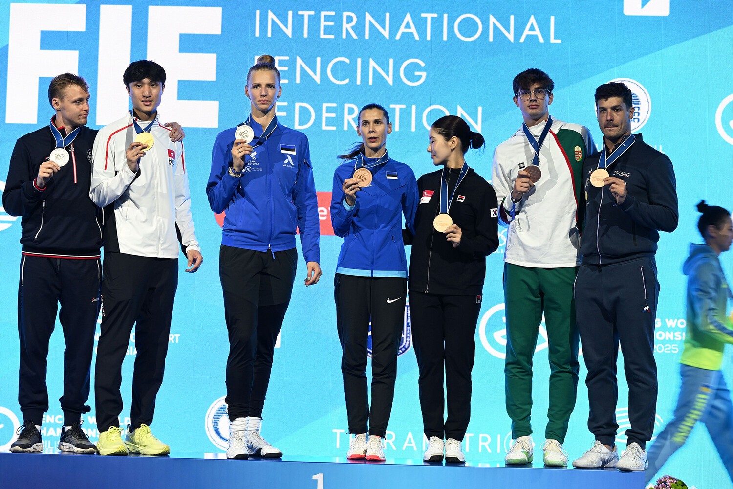На общем мероприятии вручения наград, подводящем итоги соревнований, Харькова, завоевавшая золото в состязании шпажисток, покинула пьедестал, избегая совместного фото с другими призерами.