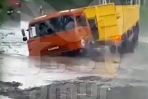 В Хабаровском крае произошел инцидент, связанный с тяжелым грузовиком, который оказался затопленным на размытой дороге....