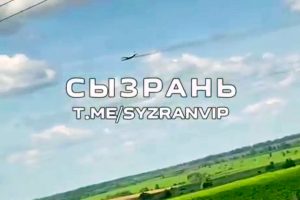 Под Сызранью (Самарская область) в небе был замечен самолет, за которым тянется густой черный дым....