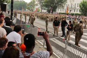 На юбилейный военный парад в Вашингтоне, организованный в честь 250-летия основания Сухопутных войск США, было...