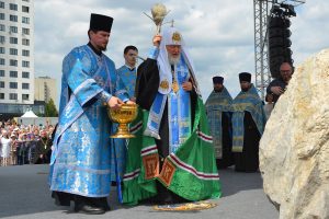 Патриарх Московский и всея Руси Кирилл провел церемонию освящения закладного камня для Воскресенского собора в...