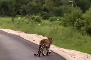 В Хасанском районе Приморского края леопард спокойно прогуливался по трассе, о чём сообщает Telegram-канал «Новости...