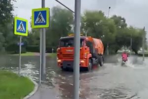 Государственная автоинспекция Москвы представила видеоматериалы, демонстрирующие серьёзное подтопление дорожного покрытия на участке дублёра проспекта Мира...