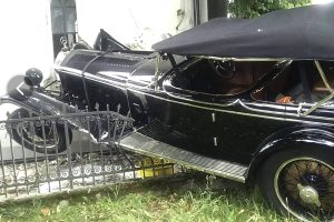 В Словакии водитель ретроавтомобиля Mercedes-Benz 1929 года выпуска потерял контроль над управлением, снес металлический забор...