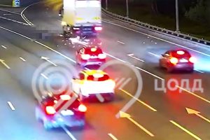 На МКАД произошёл инцидент: автомобиль во время перестроения столкнулся с мотоциклистом, оттолкнув его на едущий...